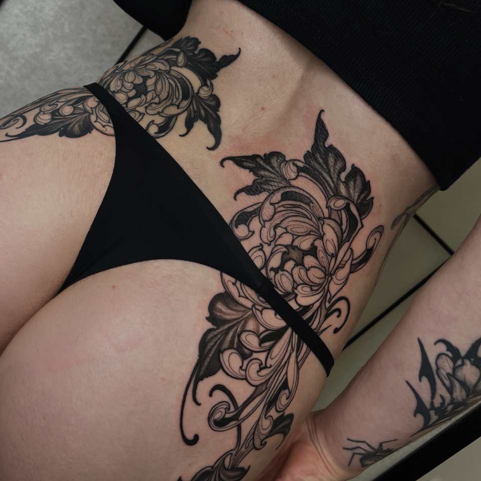 Tatoueuse brésilienne à Paris ✦ Un univers botanique et mystique, où chaque tatouage s’enracine dans la nature et épouse les lignes du corps.